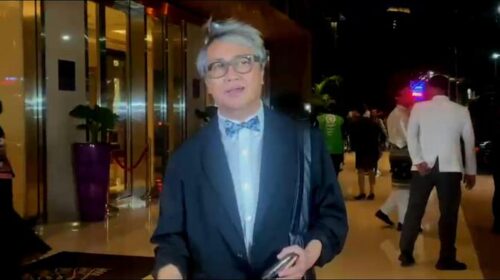 Sebelum memasuki gedung acara, Thomas menyempatkan diri untuk menyapa awak media yang menunggu di pelataran lobi hotel. Ia memberikan doa dan harapan terbaik bagi El dan Syifa, pasangan yang kini telah resmi menjadi suami istri.